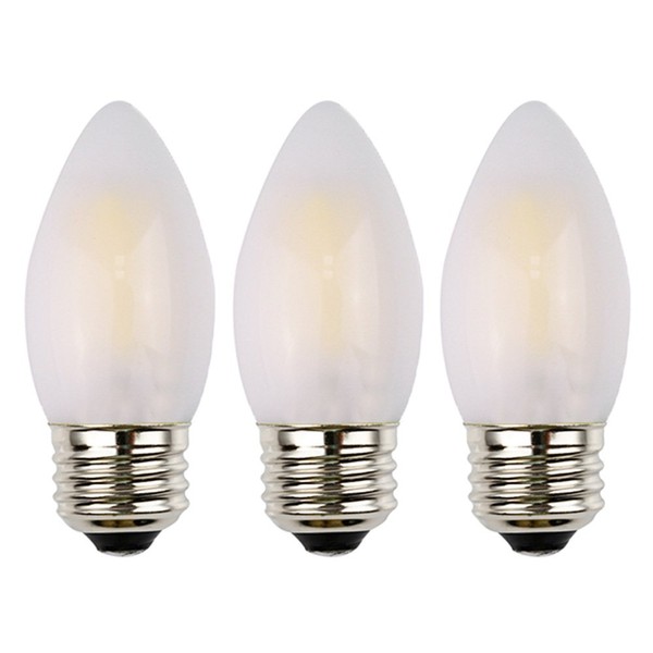 OPALRAY C35 LED Candelabra Bulb, 2W Dimmable, 25W Incandescent Equivalent, High CRI Warm White Light, Frosted Glass Housing, E26 Medium Base, Torpedo Tip, 3 Pack