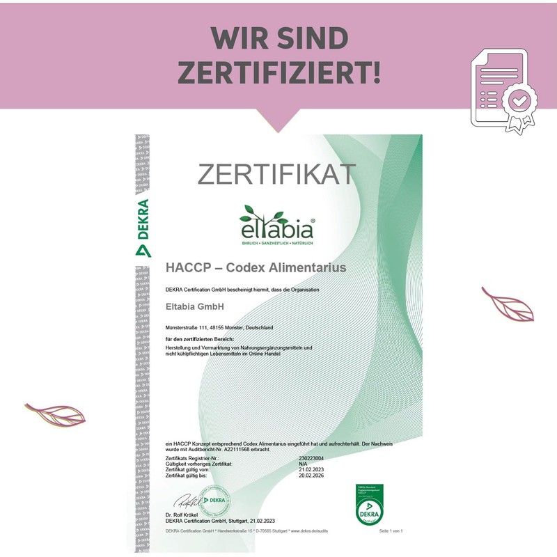 - Hochreine Extraktion, 100 % frei von toxischen Rückständen wie Methanol, Aceton oder N-Hexan. In hochreinen HPMC-Kapseln – natürlich, rein und ideal für eine bewusste Lebensweise