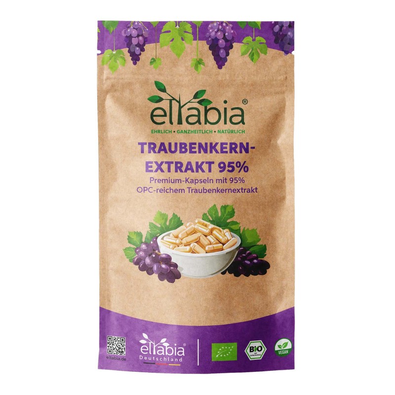 OPC Traubenkernextrakt Kapseln 200 Stück 95% OPC Hochdosiert 950mg Tagesdosis Rohkost Qualität Traubenkern Pulver vegan und frei von Zusätzen