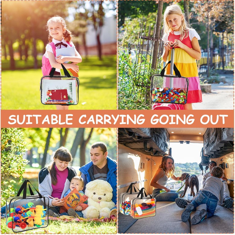 - Heart-Warming Design: The toddler zipper storage bags for kids have an overall transparent design, so children can easily see and find the toys inside they want. Storage bags for toys have two handles, which have a stronger load-bearing capacity and are more sturdy for carrying toys, books, etc. when going out. Included name labels help you write names or store them in categories