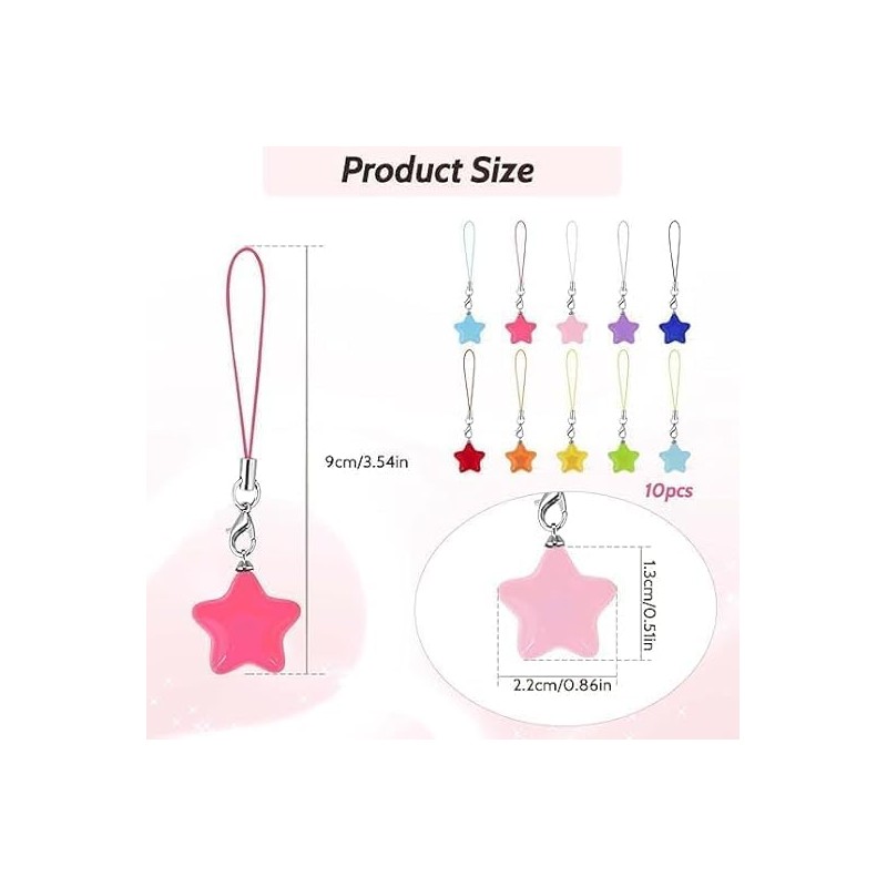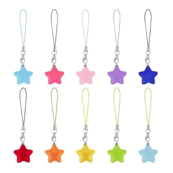 - VERSATILE SET: Pack of 10 multicoloured phone charms featuring star designs, perfect for personalising your mobile devices and accessories