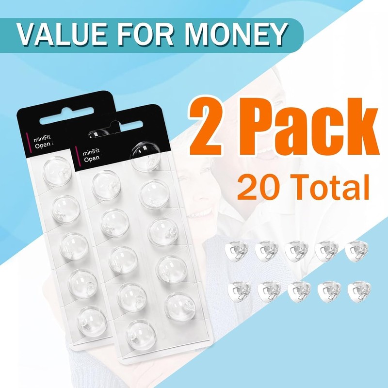 Open Domes 10mm Double Vent Hearing Aid for Oticon Replacements, Oticon Minifit Double Vent Bass Domes, 2 Pack of 10 Each (Total 20Pcs)