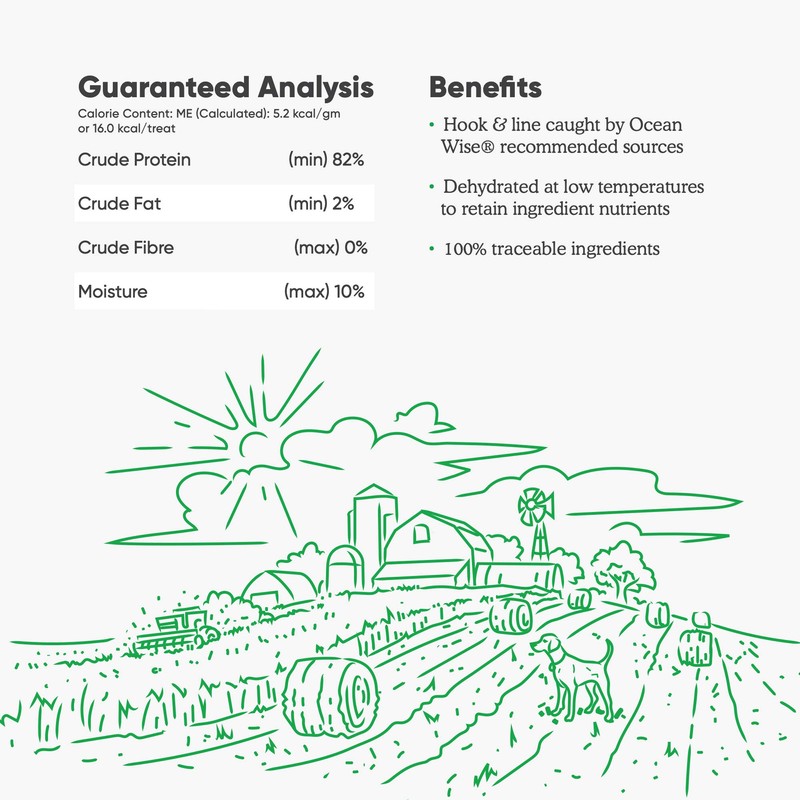 - SUSTAINABLY CAUGHT FISH: Our cold-water cod treats are made with fish that’s wild-caught using only Ocean Wise science-backed sustainable fishing practices at responsible fisheries and never in a farm, so you can feel good about your dog’s treats.