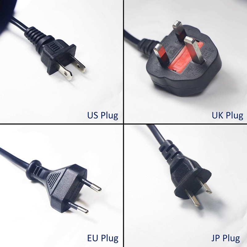 - Provide a 1.6 m long cable with on/off switch. (EU plug 240V to EU) (UK plug 240V to UK) (US plug 110V to USA and CA) (AU plug 240V to AU & NZ)