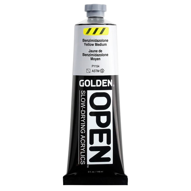OPEN Slow-Drying Acrylics by GOLDEN, Benzimidazolone Yel Med, 5 fl oz. tube, Professional Acrylic Paint, Semi-Transparent