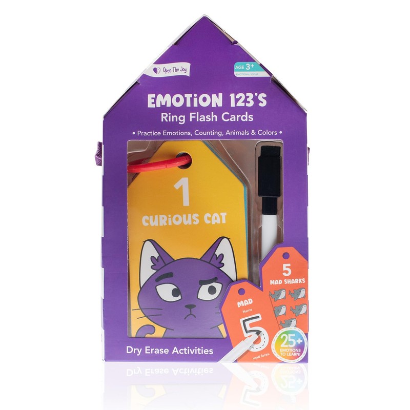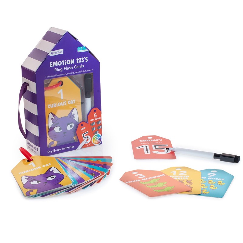 Open The Joy - Dry Erase Flash Cards for Kids - 123 Numbers, Emotions Learning Set with Educational Activities, Reusable and Durable Cards for Early Childhood Development