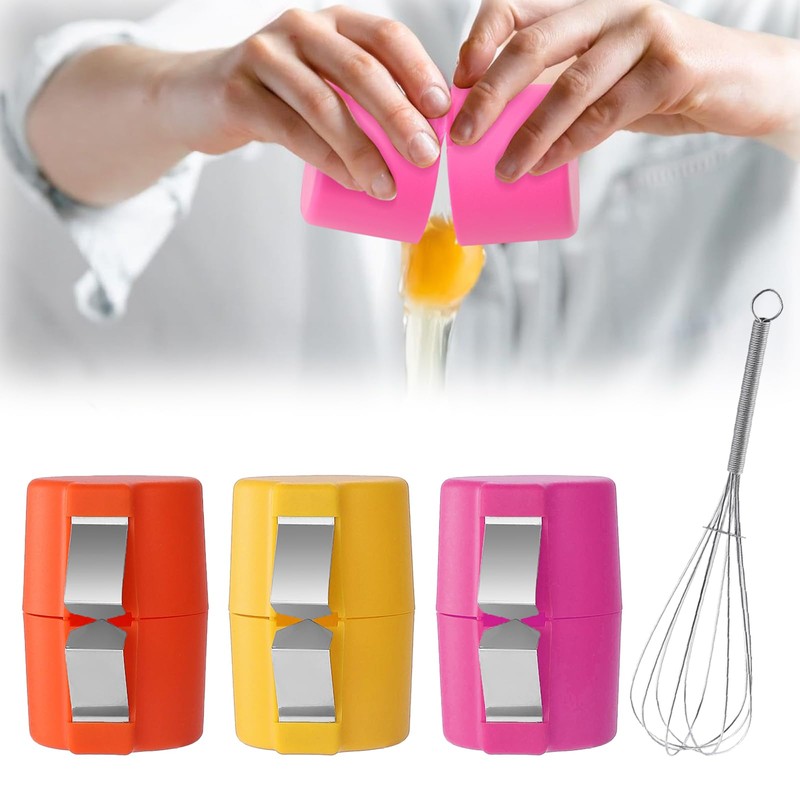 - Pack of 3 egg cracker tools: the package contains 3 egg shell openers and 1 egg beater. The egg cracker design allows easy and cracking, making your kitchen work more convenient and efficient. Can open eggs quickly and easily.