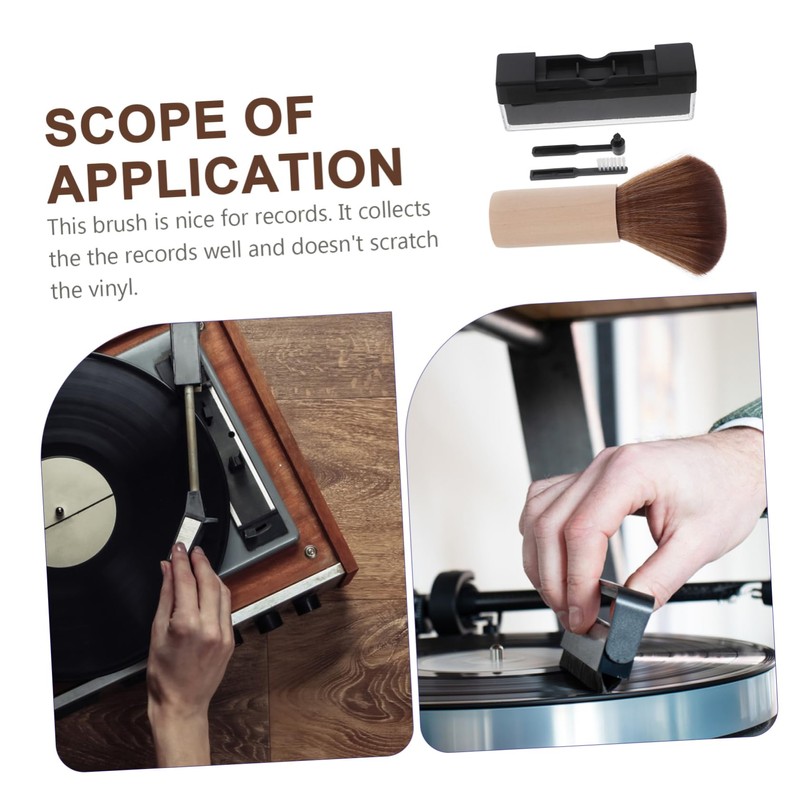 vinyl cleaning kit The anti-static record brush removes dust and static, while the wooden handle brush provides a thorough clean.clean brush with wooden handle The record cleaning tools included in this kit are specifically designed to maintain the quality of your vinyl records.anti-static cleaning brush Use this vinyl record cleaning brush set regularly to ensure your records sound as good as new.vinyl records cleaner brush Enhance your listening experience with this comprehensive vinyl record care set