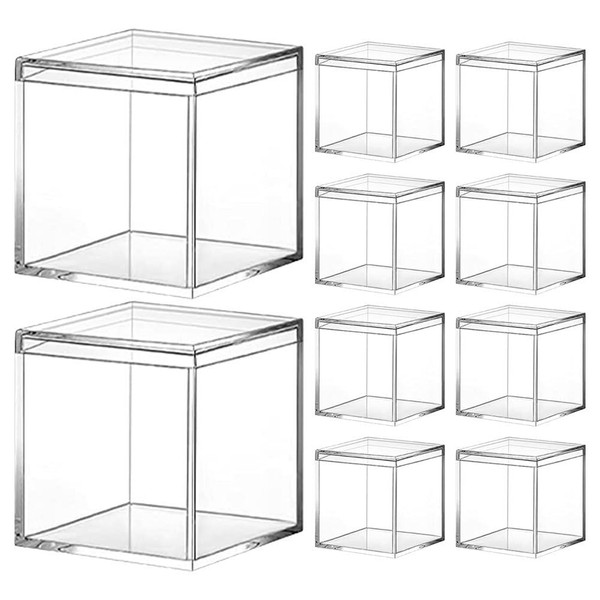 Operitacx 10pcs Small Acrylic Boxes with Lids Clear Acrylic Plastic Square Cube Containers with Lids Storage Boxes for Candy, Pills and Small Jewelry