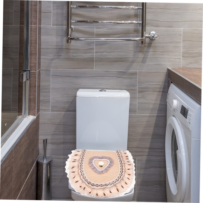 Operitacx 1Set Washable Toilet Seat Cover Cushion Pad with Lace Design Soft Material Space Saving Durable and Comfortable Toilet Accessory for Home Use