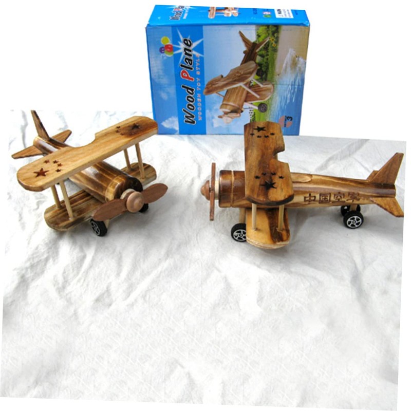 Operitacx 2 Pieces Wooden Plane Ornaments Models Toy Aeroplane Aeroplane Wooden Desktop Craft Decorate Decorations Child