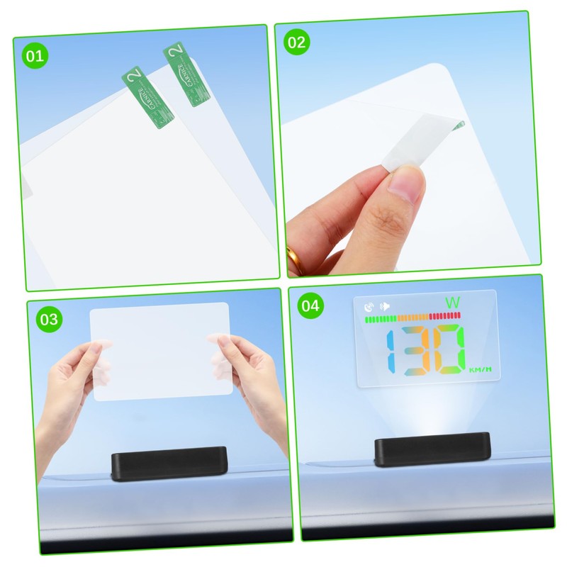 • Windshield projection film--there is no need to spray water for posting, just clean the posted place without dust particles remove after use without any glue residue, can be reused after washing,car speed display windscreen