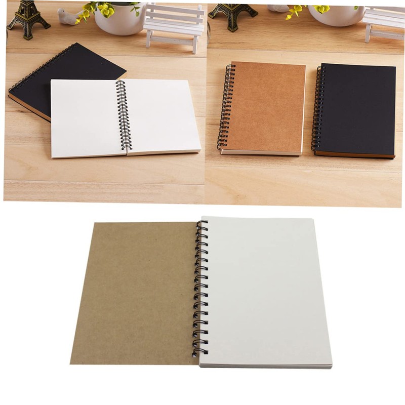 Operitacx 2pcs Spiral Bound Cowhide Sketch Book Plain Paper Notebook Sketch Pad for Artists Students