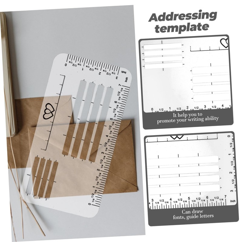addressing template Styling your letter into templates has never been easier and efficient.hollow out template This means that your stencil will not break easily or fall apart.plastic envelope The Envelope Addressing Guides are made of plastic material, thick, translucent and bendable material, maintain their looks and shapes