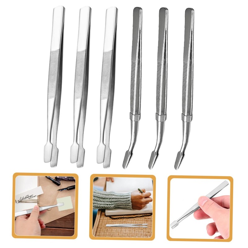 Operitacx 6pcs Stainless Steel Stamp Tweezers Precision Hobby Tweezers for Crafts Stamps and Eyelash Application Durable Flat and Curved Tips Multi-use Tool