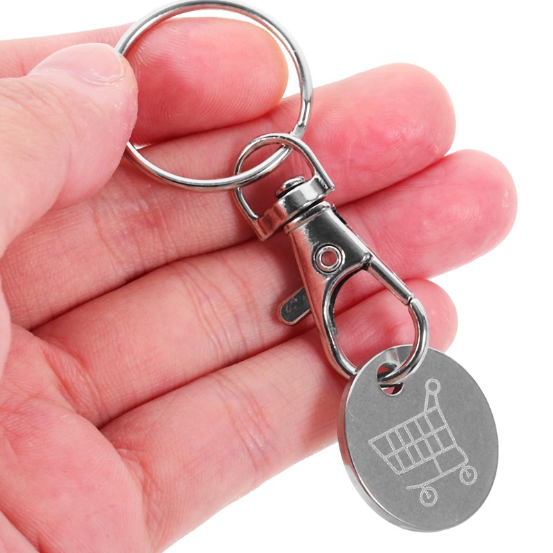 - Thanks to the production in lightweight design, the shopping trolley key ring fits into the key ring insert tokens keychain.