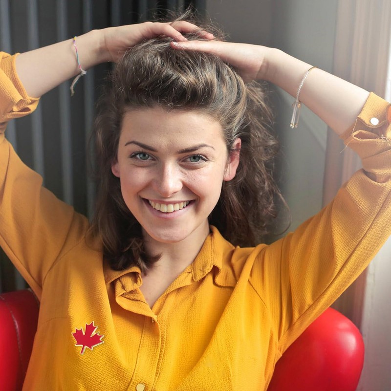 brooch is designed in the shape of a maple leaf for extra chic, these