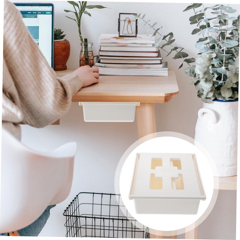 Operitacx Office Desk Storage Box Self Stick under Desk Drawer Organizer Tidy Desktop Minimalist Design