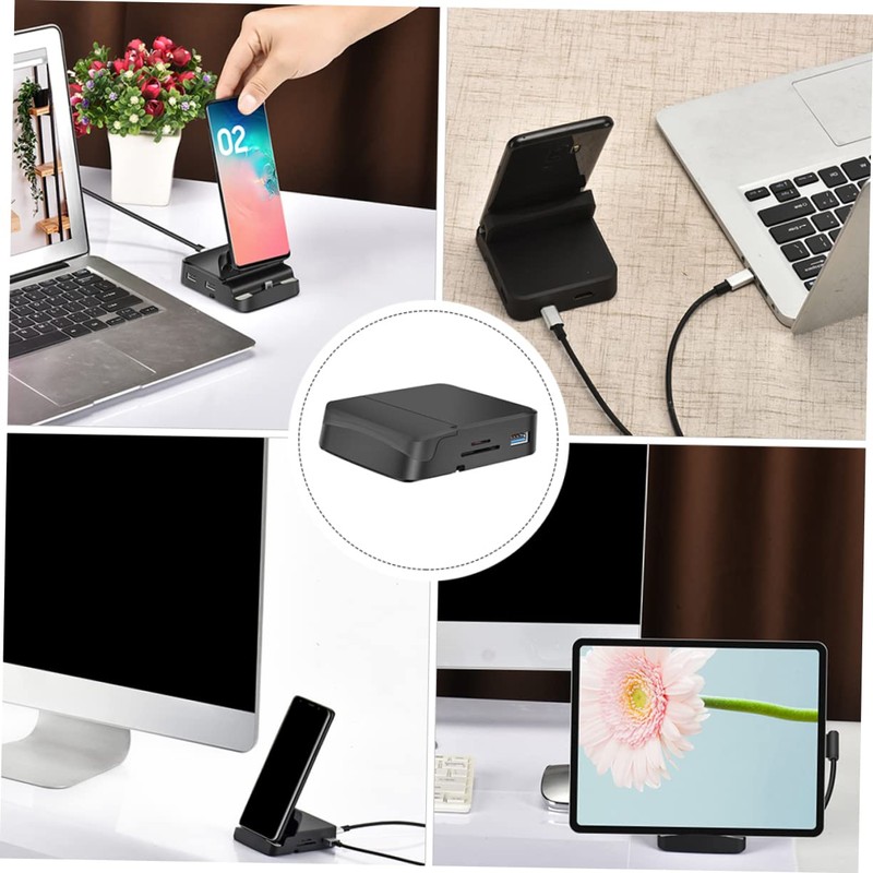 USB c docking station So it can use for a longer time.usb-c charging station This is a USB data hub and a phone holder.usb hub splitter If you've been looking for a multi ports USB hub, then your search is over! Our product is suitable for you, providing more USB for your phone and tablet to use.docking station USB is made of material, good heat dissipation to provide stable performance to ensure smooth and stable function