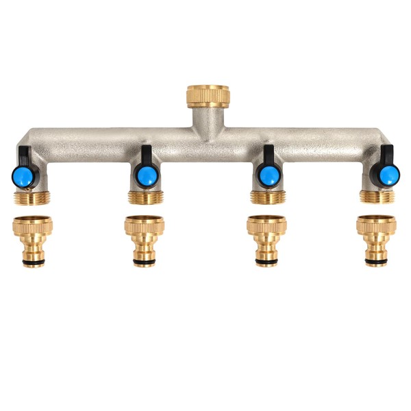 - 【Regulierung des Wasserflusses】 Die vier Kugelventile arbeiten unabhängig voneinander und können jederzeit geöffnet oder geschlossen werden, so dass mehrere Aufgaben gleichzeitig ausgeführt werden können. Ermöglicht den gleichzeitigen Anschluss von fünf verschiedenen Geräten/Schläuchen an eine Wasserquelle.