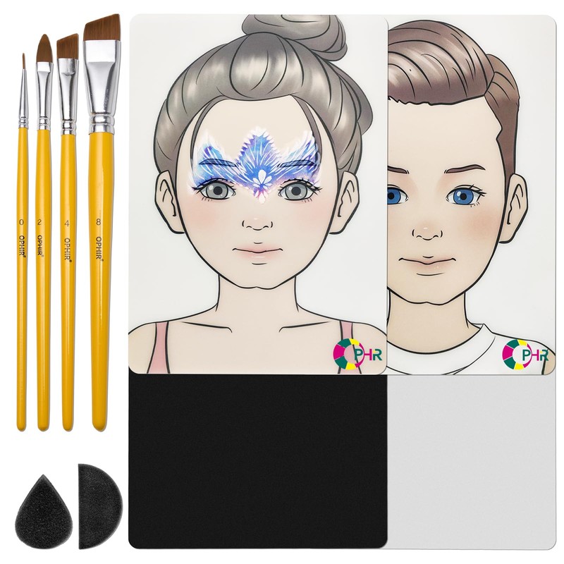 • 【Complete Kit For Face Painting Practice】Elevate your face painting skills with the OPHIR makeup face painting practice supplies. Featuring 4 reusable A4 face practice boards, including 1 black and 1 white, plus 2 colorful makeup exercise templates, this set offers endless opportunities to perfect your technique.Whether you're a seasoned pro or just starting, this kit provides the ultimate face painting practice board set.