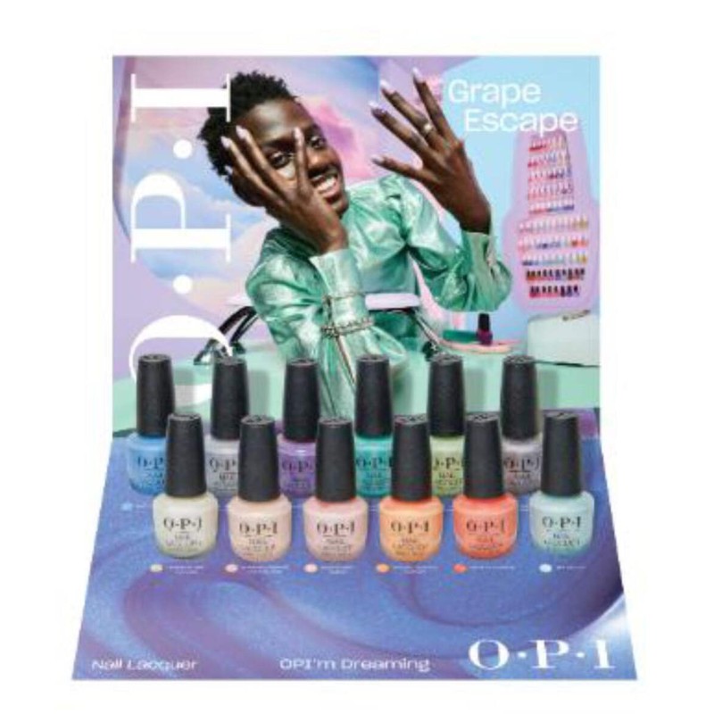 OPI Nail Lacquer OPI’m Dreaming Spring 2025 Display #DCS021 DCS021 99350180877 4064665223002 "SPRING 2025 NAIL LACQUER 12PC CHIPBOARD DISPLAY Includes: 12 - Nail Lacquer 15 mL - 0.5 Fl. Oz. Bottles Shades included: Spring 2025 Nail Lacquer shades 1 - Hands In The Clouds, Mirror, Mirror on the Awe, Reoccurin' Gleam, Beauty School Popout, Keep It Surreal, Air We Go, Happy Play-ce, Welcome to Your Whirl , Grape Escape, Reality Check Ya Out, AppointMINT Confirmed, Case of Glamnesia Receive at No Charge: 1 - Spring 2025 Chipboard Display 1 - Spring 2025 Color Chart 1 - Spring 2025 Palette Label (GC/NL/PP) 1 - Blank Clear Color Palette with Chain" OPI OPI’m Dreaming Spring 2025 Collection Up to 7 days of wear.* *When used with our 3-step system. Smooth, glossy finish with brilliant shine. Pro-Wide brush for flawless application. Color remains true during wear. Smudge resistant. Dries quickly.| Brand: | OPI |