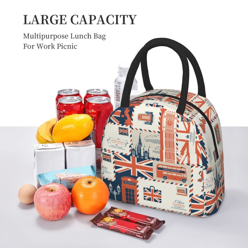Oplp London Theme Envelopes Symbols Flag Retro Style Lunch Bag Box Meal Prep Insulated Handbag Reusable Lunch Container