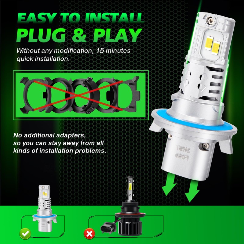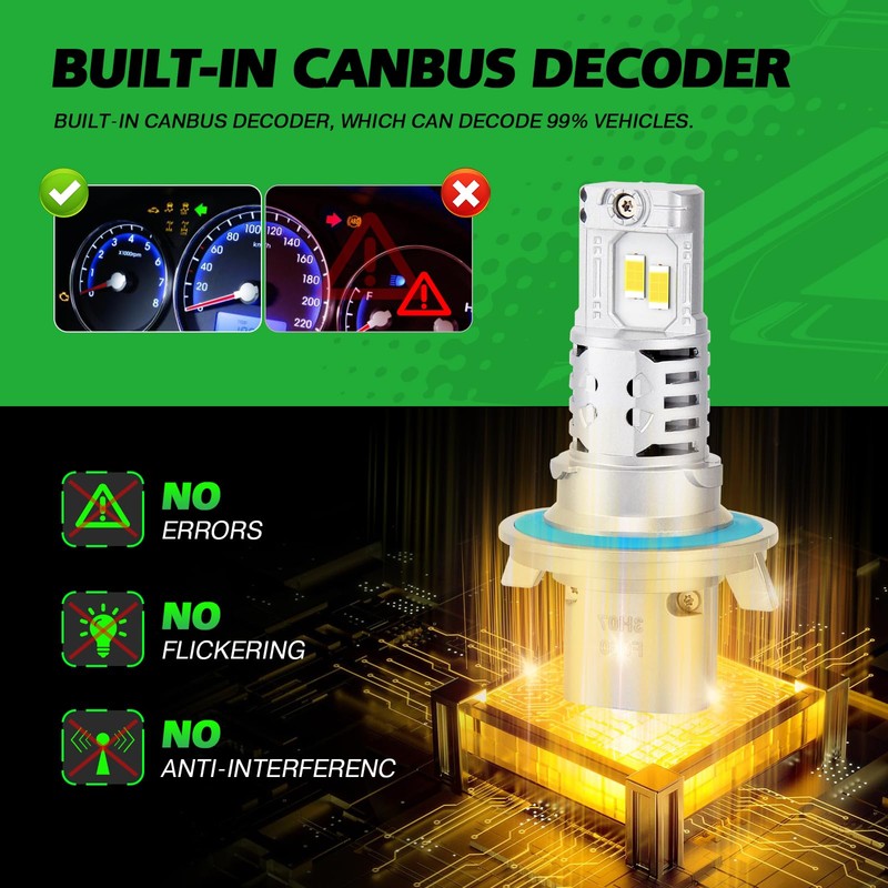 - 【Built-in Canbus Decoder】 The h13 led headlight bulbs are built-in canbus decoder, which can decode 99% vehicles. Some sensitive vehicles are needed the h13 adapter.