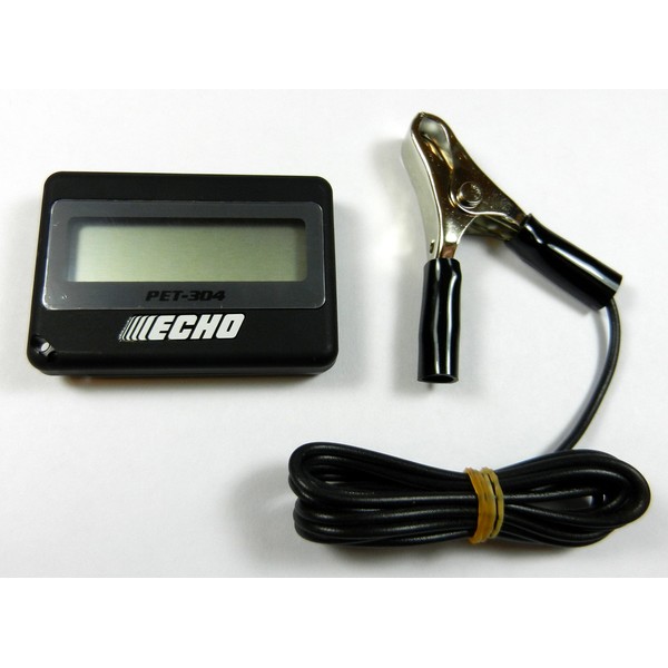 The PET-304 by Oppama is a compact digital combination tachometer/hour meter designed for use on single cylinder, 2 or 4-cycle gas engines. Can be used non-contact (wireless) or wired with the included clip-on lead. Measures RPM from 100-20,000 with +/- 10 RPM accuracy, with a 0.5 second refresh rate, measures running hours up to 10,000 hours. Other specifications: 20,000 running hour battery life (non-replaceable), weight: 1 ounce, dimensions: 1.6" x 2.3" x 0.5" Made in Japan by Oppama, Echo branded