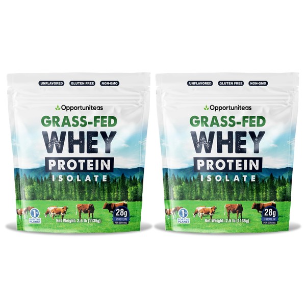 Opportuniteas Opportuniteas Grass Fed Whey Isolate Protein Powder - Unflavored 28g Protein Powder Without Artificial Sweeteners, Hormone-Free Cows, Non GMO - 5lb