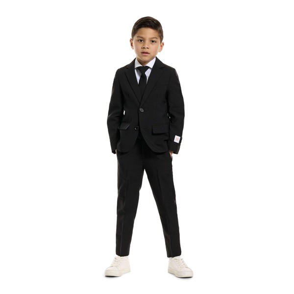 - INCLUDED IN YOUR OUTFIT: All suits have a button closure, inner pockets and a modern, tailored cut for a stylish fit. The trousers have an adjustable waistband. The OppoSuits boys' suits are made from 100% polyester and are machine washable. The package includes a blazer, trousers and tie.