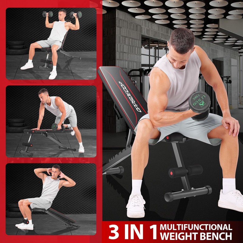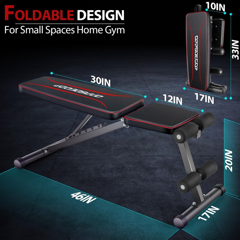 OPPSDECOR Weight Bench Press, Sturdy Durable Foldable Workout Bench with Adjustable Backrest Flat Incline Decline Sit Up Bench for Home Gym Strength Training