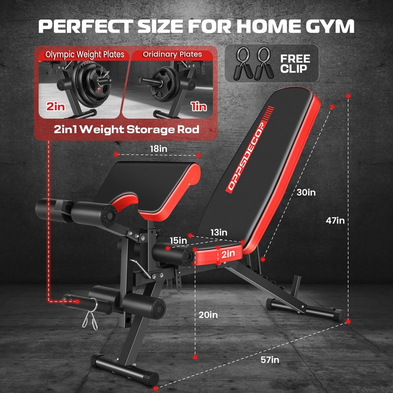 - 【Versatile Adjustable Weight Bench & Absolutely Flat Bench】OPPSDECOR weight bench precision-adjustable 7-position back rest + 4-point seat adjustment + 3-level curl pad system. Create 21+ training configurations for compound movements and isolated core workouts.