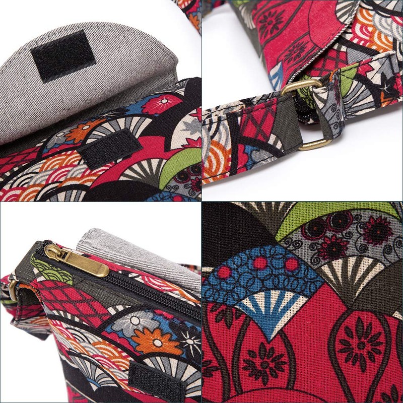 OPQRSTU Women's Retro Small Size Canvas Shoulder Bag Hippie Boho Crossbody Handbag, Red, S