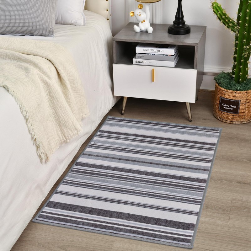• 【Modern Striped Rug】This small rug is designed with a modern abstract stripe pattern, simple but not simple, can be easily integrated into a variety of home styles. The precise size of the rug is 2×3ft(24×36in), whether it is placed in the indoor entryway, bedroom or dining room, this neutral rug can create a cozy and layered home environment for you.