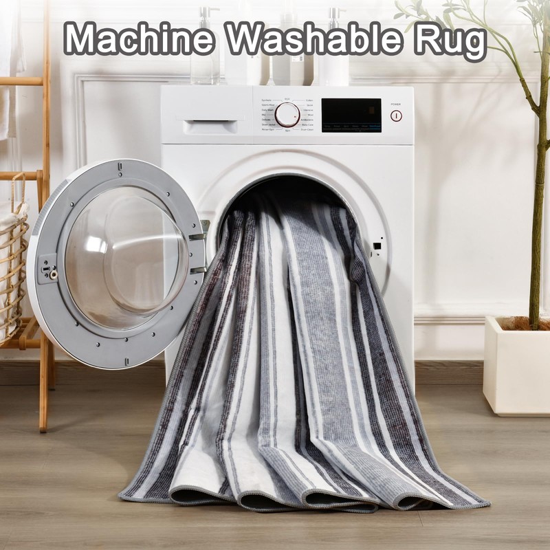 Opreine Modern Striped Rug - Ultra Soft Washable Area Rug