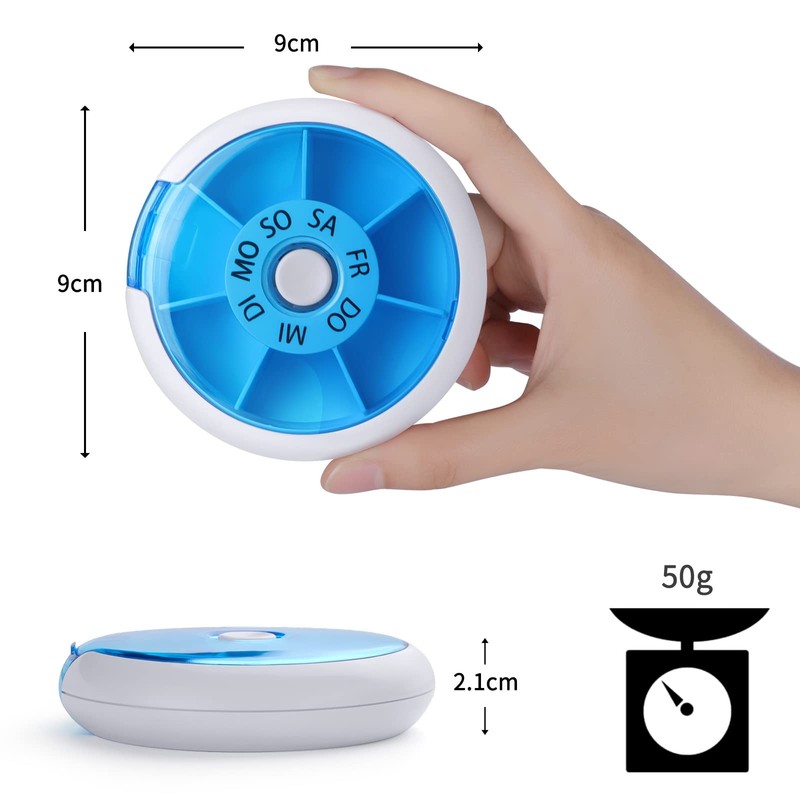 - Pillendose 7 Tage: Die Opret Pillendose rund fasst bis zu 6 Kapseln oder 14 tablets in jedem fach.