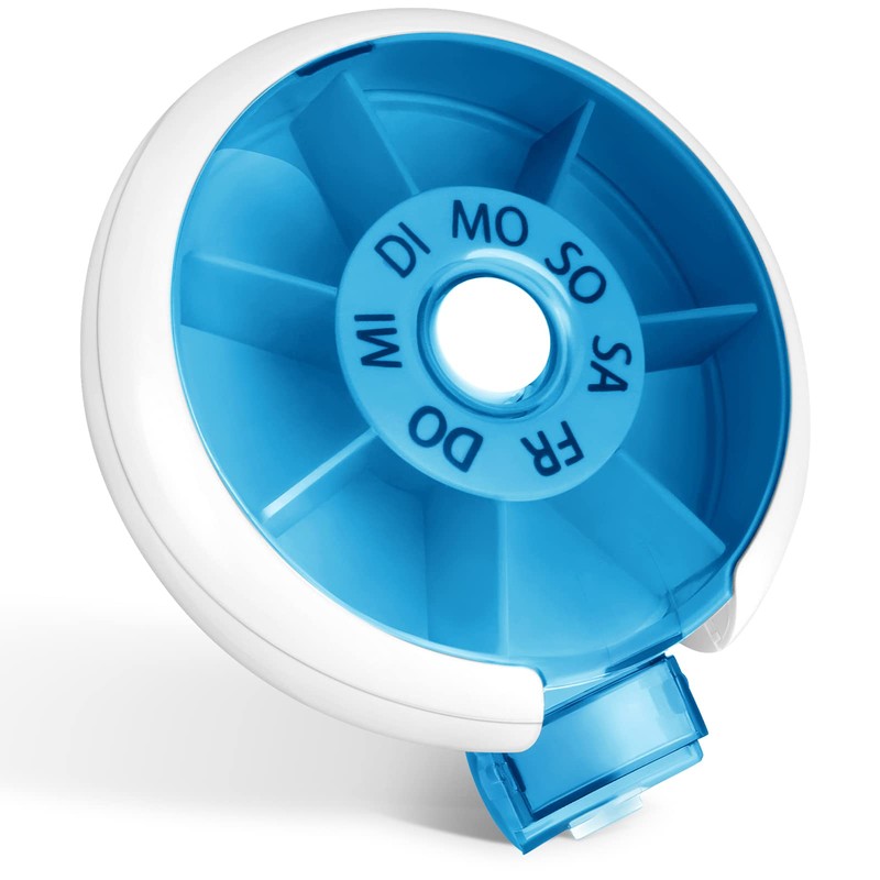Opret Opret Tablettenbox 7 Tage klein Pillendose Klein Medikamentenbox 7 Tage Tabletten Wochenbox Pillenbox Tablettendose für Unterwegs Rund Blau