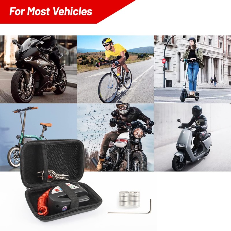 - 【130 dB ALARM DEVICE】- The motorcycle alarm lock has built-in high-sensitivity sensors that can detect vibration and movement, and the alarm system emits ultra-high volume to deter thieves and keep your vehicle safe!