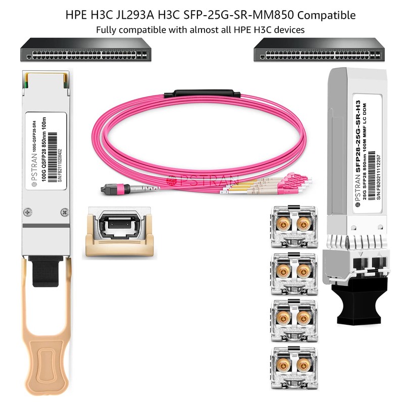OPSTRAN 25GBASE-SR SFP28 Optical Transceiver Module Compatible with HPE H3C JL293A SFP-25G-SR-MM850 25G SFP28 850nm 100m DOM Duplex LC MMF