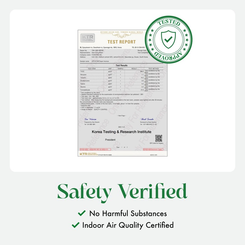 - [Clean & Safety Assured] OPTATUM Paper Incense has passed indoor air quality safety tests and harmful substance tests, ensuring its safety. You can rest assured with no worries, enjoying the delicate smoke providing a rich fragrance of it