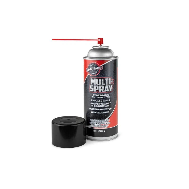 Opti-Lube Multi-Spray Aerosol Lube is a heavy-duty sprayable lubricant that not only disperses water, cleans surfaces, penetrates and lubricates, while also being a non-staining and transparent dry lubricant. It is formulated with the latest synthetic additives to assure maximum penetration and protection against rust, corrosion and wear on metal to metal, metal to plastic and many other parts. When applied, the carrier solvent quickly evaporates, leaving behind a dry wax-like extreme-pressure lubricant which will not wash-off or attract dust easily.