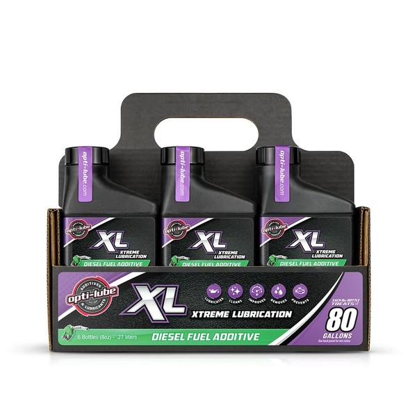 - CONTAINS: 8oz bottles of Opti-Lube XL Xtreme Lubrication. Each 8oz bottle will treat up to 80 gallons of diesel fuel.