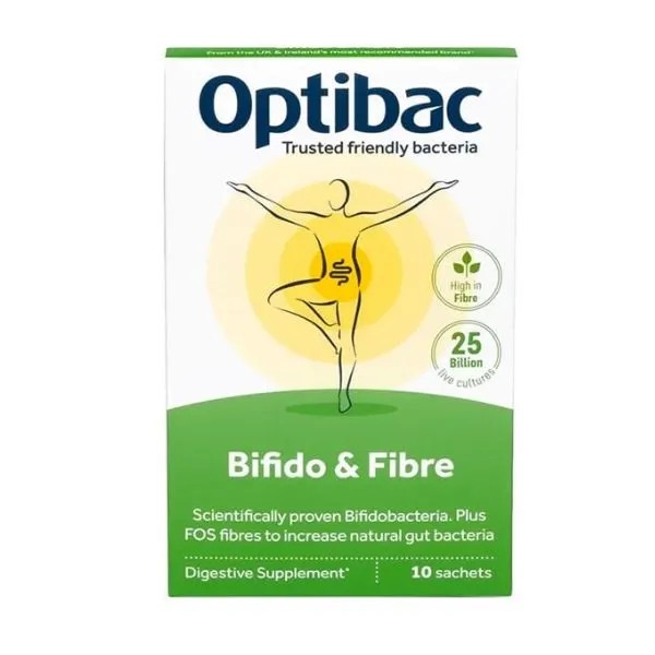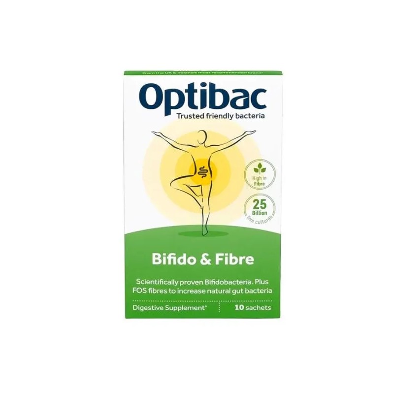 Optibac Bifido & Fibre is a supplement with probiotics and prebiotic fibres in convenient sachets (powder), designed to support gut health and the natural balance of the gut microbiota.