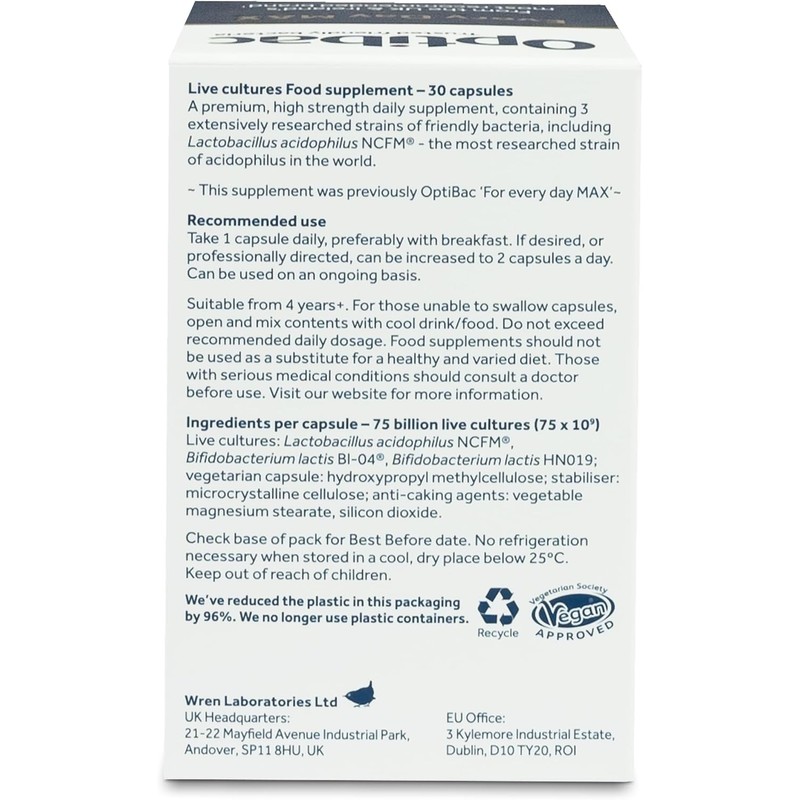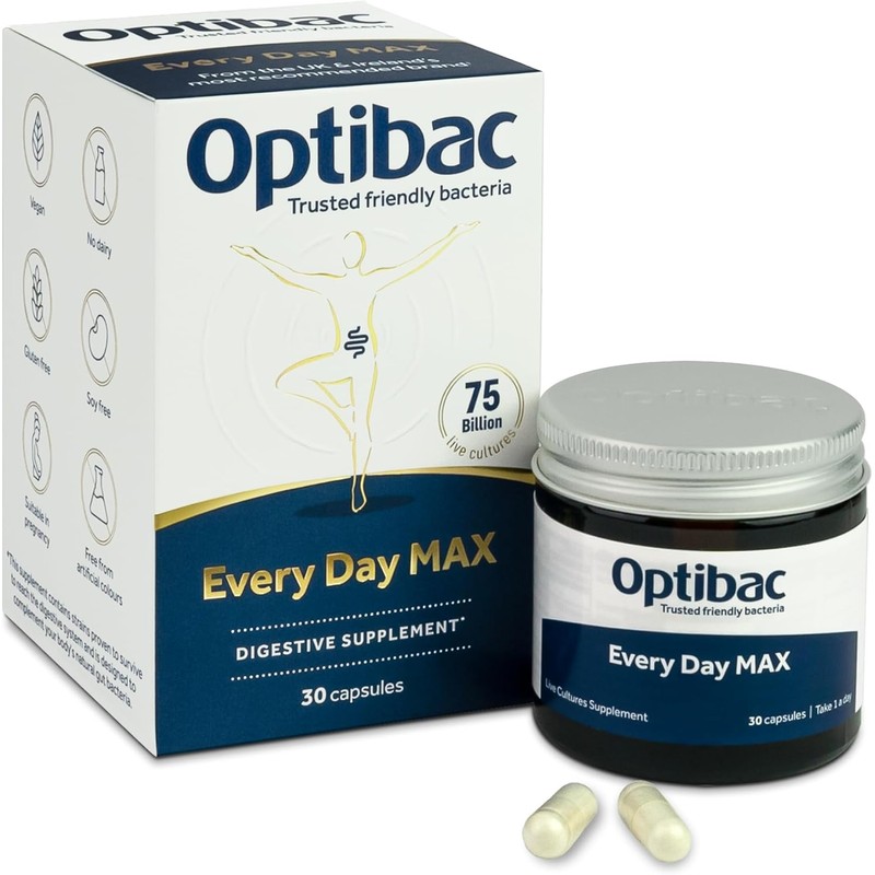Optibac Probiotics Every Day MAX – High Strength Vegan Probiotic Supplement | 75 Billion Live Cultures per Capsule | Daily Gut and Digestive Health Support | Advanced Formula with 3 Strains | 30 Capsules
