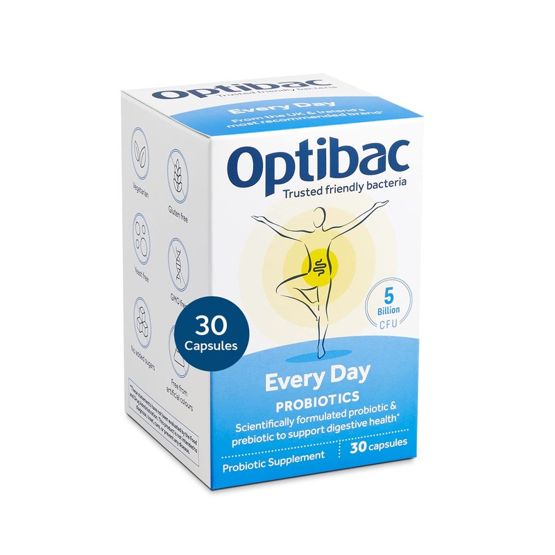 Optibac Probiotics Optibac Probiotics for Every Day - Vegetarian Probiotic Supplement for Digestion & Gut Health, 5 Billion CFU & Prebiotic - 30 Capsules