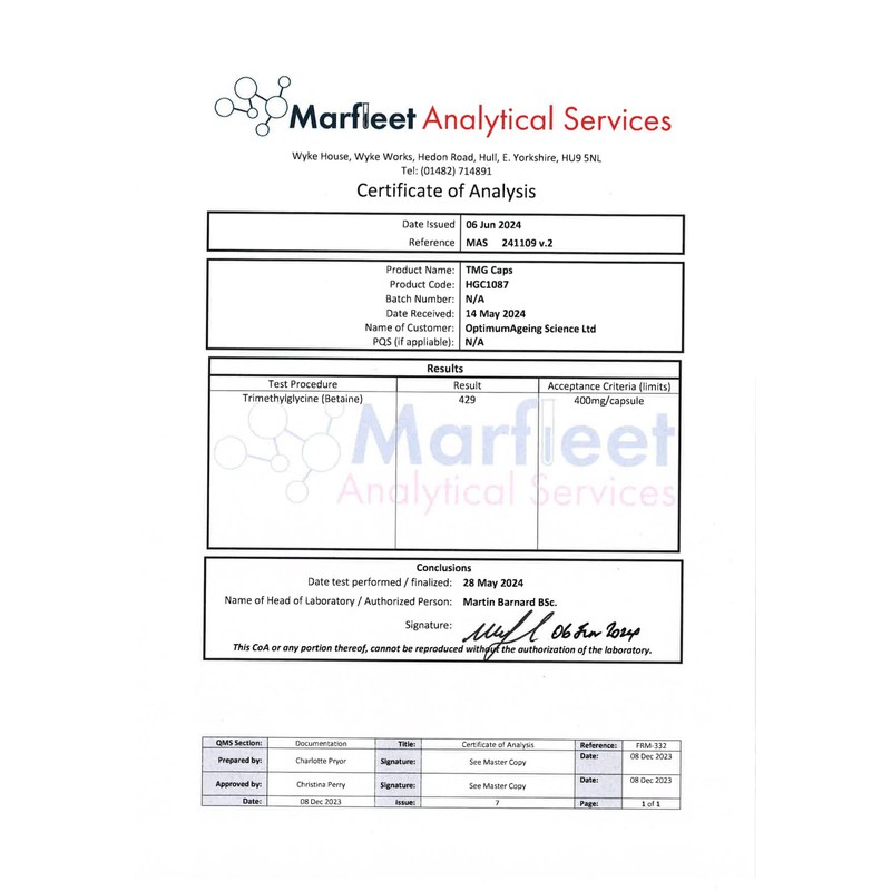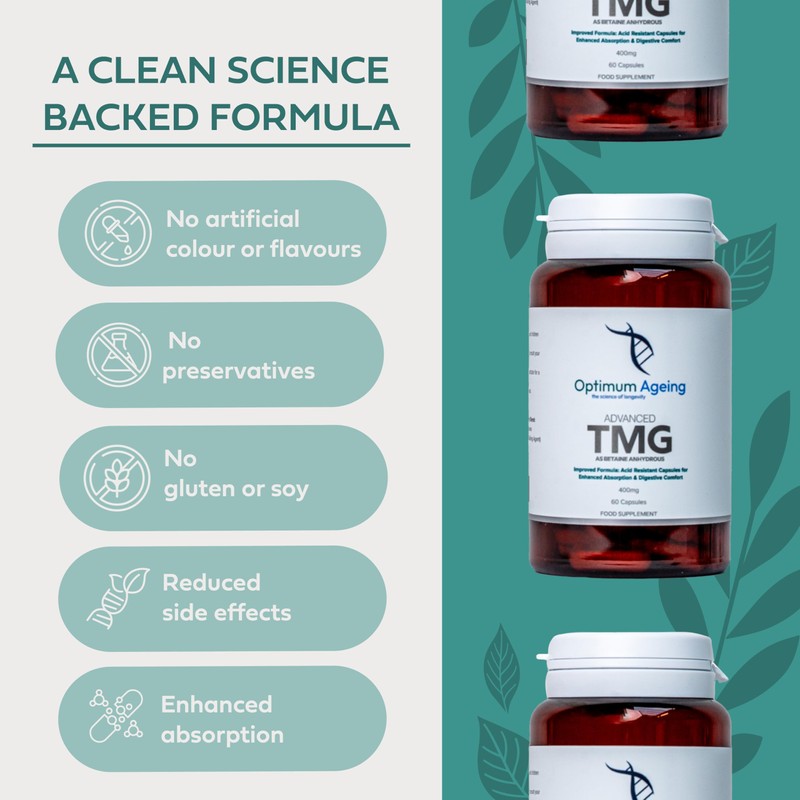 Optimum Ageing Optimum Ageing Advanced TMG - 1200mg High Strength Pro Trimethylglycine Supplement | Made in UK & Third Party Tested - 60 Slow-Release Capsules