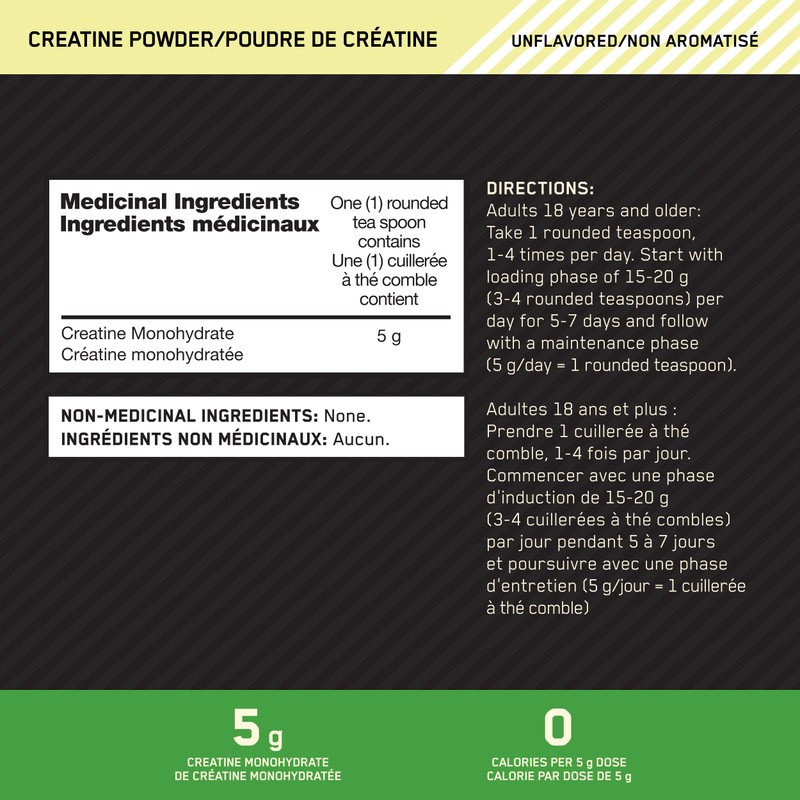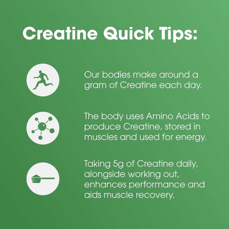 - 5 grams of PURE creatine monohydrate per serving