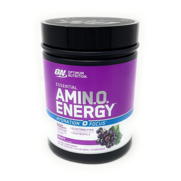 Optimum Nutrition Essential Amino Energy + Electrolytes is a versatile pre-workout and anytime energy supplement powder in Grape flavor. This 72-serving container delivers 5 grams of micronized free-form amino acids per serving for faster absorption and muscle recovery support. The formula includes 100mg of caffeine from natural sources including green tea leaf extract and green coffee bean extract to provide clean, sustained energy without the crash.