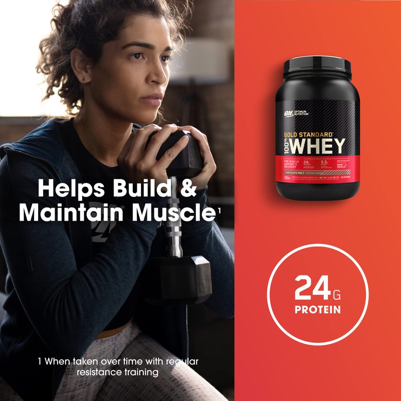 Optimum Nutrition Gold Standard 100% Whey Protein Powder, Chocolate Malt, 2 Pound (Packaging May Vary)